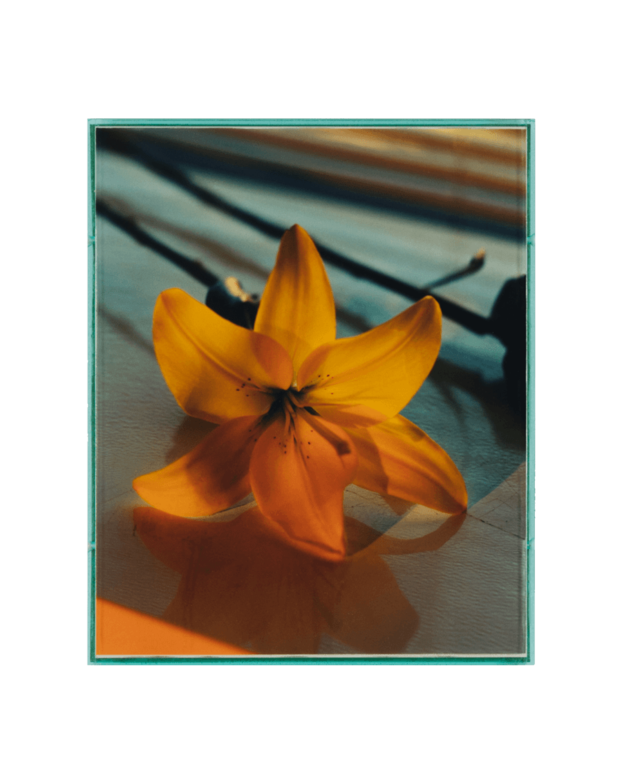 The frame's face is made the same clear Lucite as our original Max Plexibox. Its sides are crafted from translucent Aqua plexi, with a luminous edge that shows around the outside of your piece. Like all Max Plexiboxes, it’s constructed with bronze screws for added glamour. We can frame art full bleed or float it above White Linen. Textiles are sewn by our expert team to White Linen.